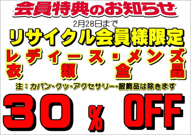メンズ・レディース衣類30%offをさせて頂いています♪