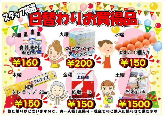 豊岡店では日替わり特価開催中です!!
